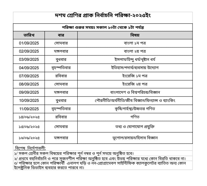 প্রাক-নির্বাচনী পরীক্ষার রুটিন -২০২৫
